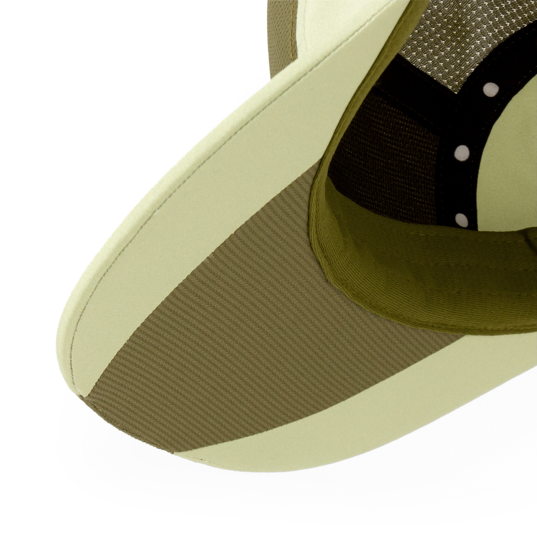 - 面料:耐用的 TUFFtek 帆布,使用回收聚酯編織。輕量、具冷卻和抗異味效果的回收 COOLmatic | PLUS MIKRAmesh™,適用於帽子頂部和頭帶。