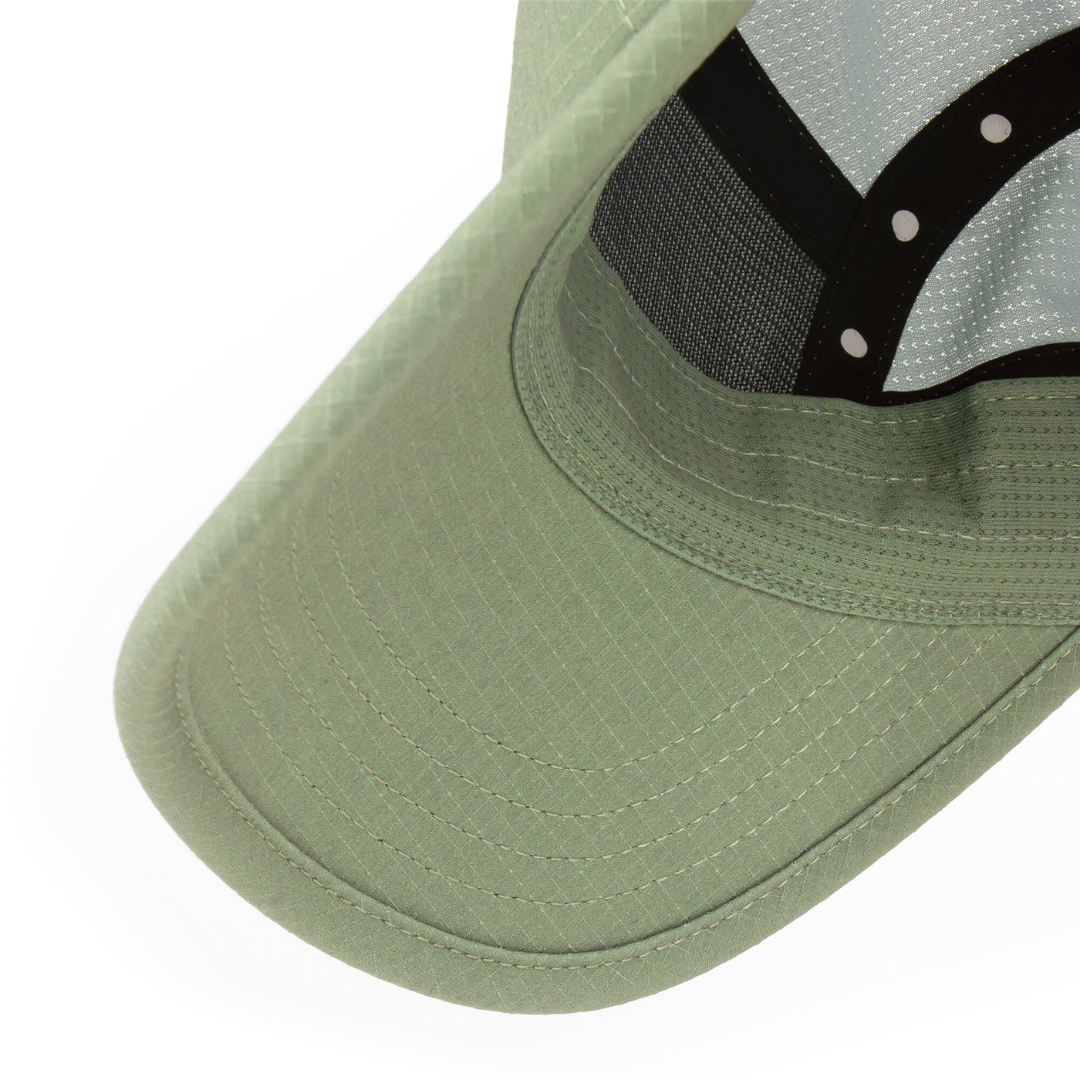 整體設計走簡潔俐落風格,搭配 預成型 EVA SOFTcurve 帽簷。帽前片、側片與後片採用 ROCstop ripstop 抗撕裂布料,提供優異的耐用度、結構支撐與 UPF 防曬保護;而帽頂、側邊與汗帶則使用 COOLmatic | PLUS 針織 FLOWmesh™,有效幫助頭部降溫、抑制異味並提升整體透氣性。