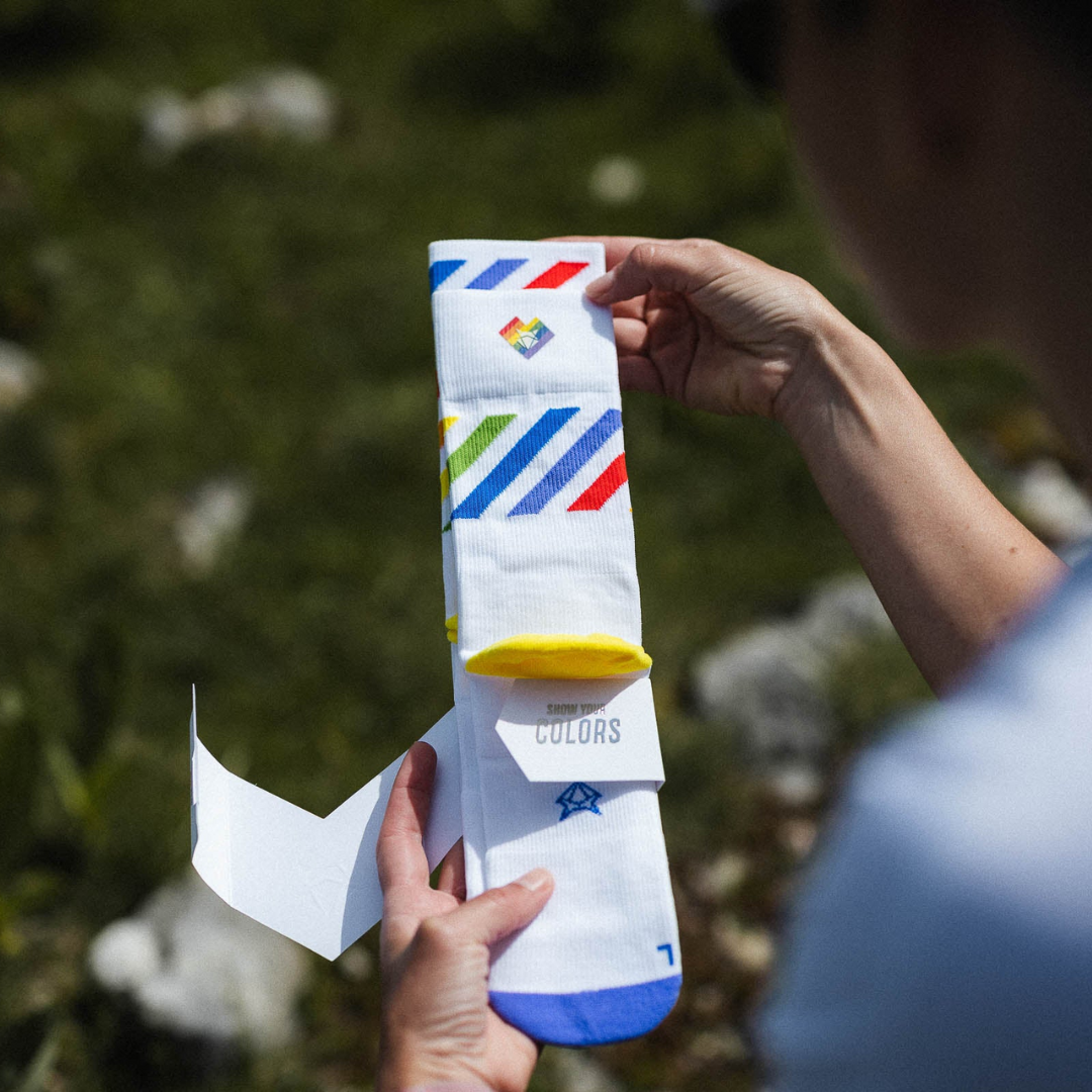 2025年,我們將繼續堅定地捍衛包容、多元和社群。限量版Pride V4跑步襪將高性能功能與清晰的品牌理念完美結合。它以驕傲旗幟的色彩和100% INCYLENCE的風格為特色,展現了激勵我們運動和生活的價值。