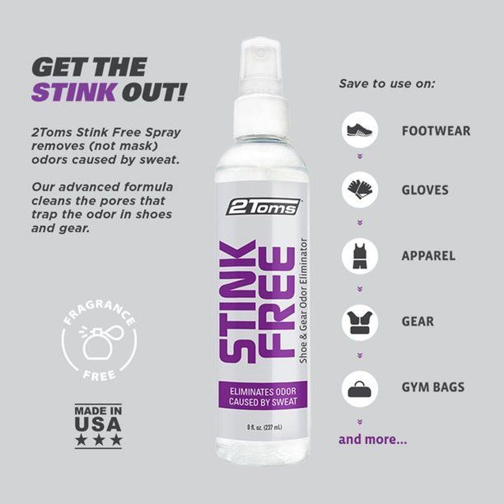 2Toms StinkFree Shoe and Gear Odor Remover的先進配方可以清潔陷阱中的毛孔,徹底去除因汗水而產生的氣味,而不是僅僅掩蓋。它可以在鞋子和運動器材的表面和內部進行清潔,從而消除氣味,為您提供更加清新的穿著體驗。