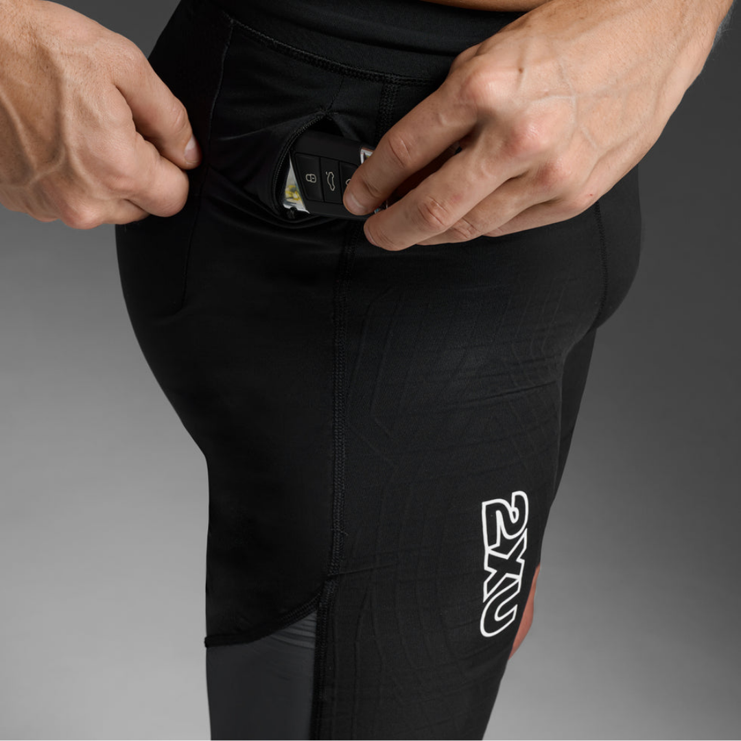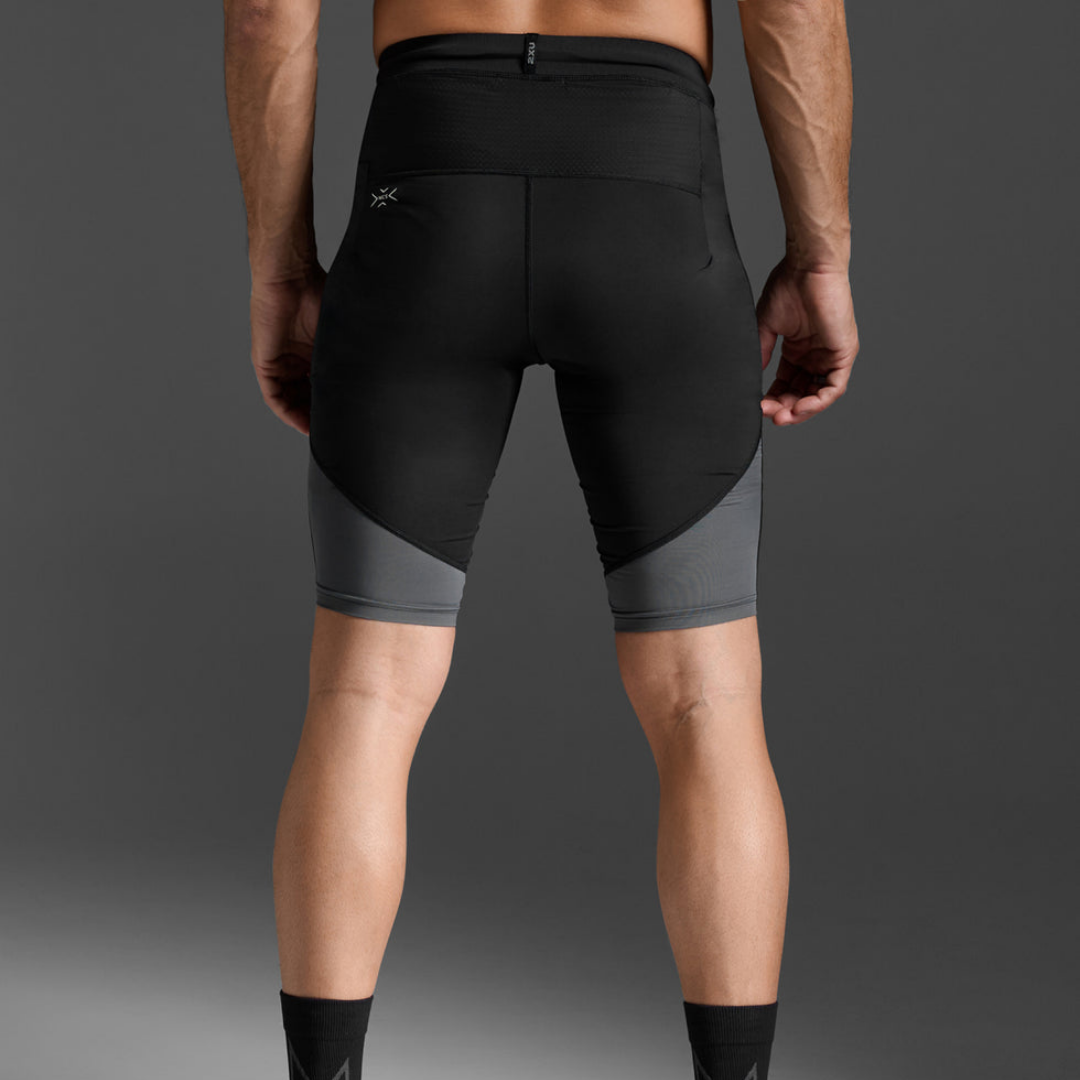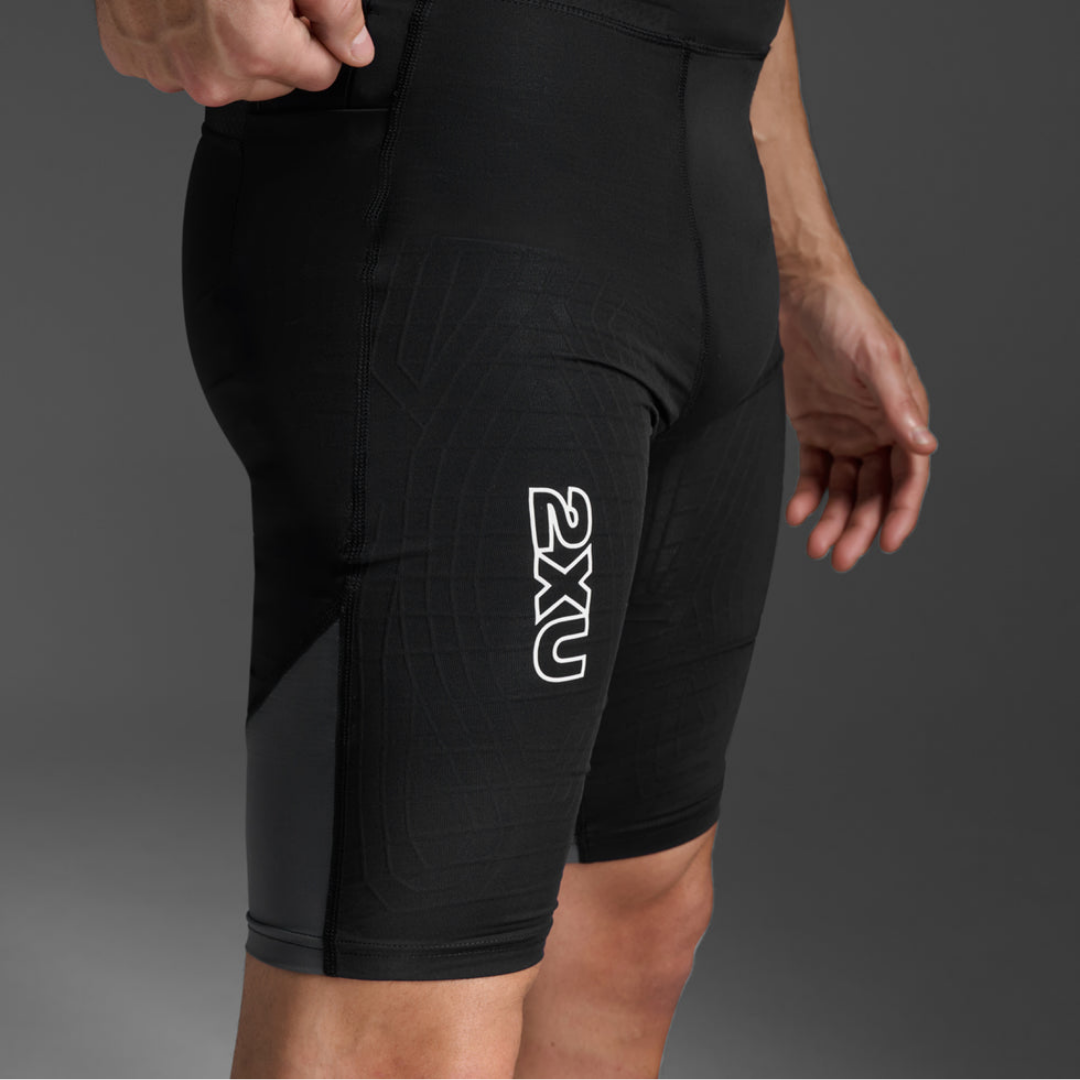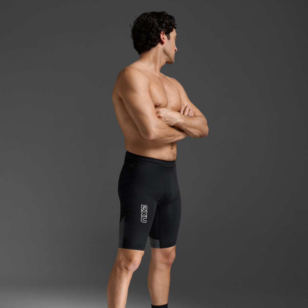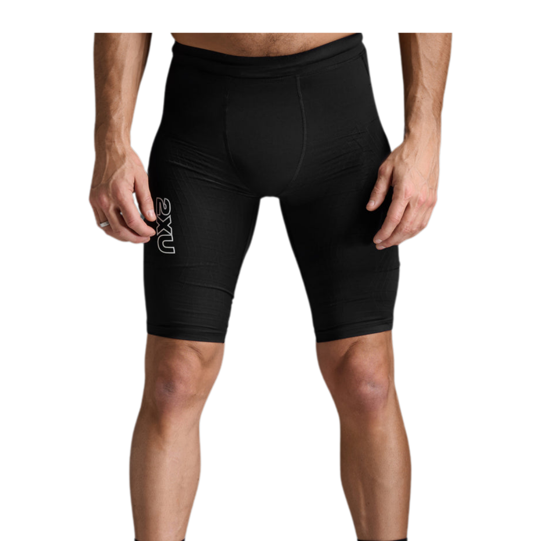 2XU Men's Light Speed React Compression Shorts (Black/White Reflective)
