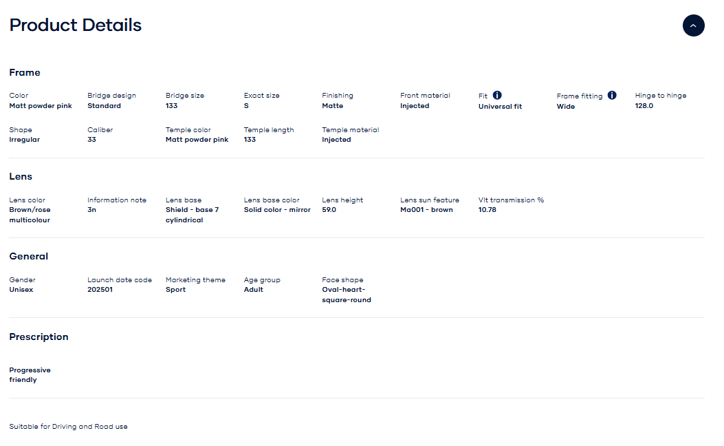 - Nano Optics 技術:高端鏡片技術,提供極少的失真、卓越的清晰度及持久的防霧效果,是追求極致視覺品質的最佳選擇。