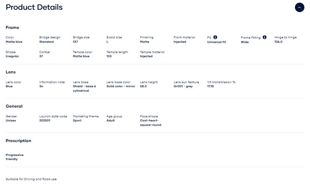 • Nano Optics 技術:高端鏡片技術,提供極少的失真、卓越的清晰度及持久的防霧效果,是追求極致視覺品質的最佳選擇。