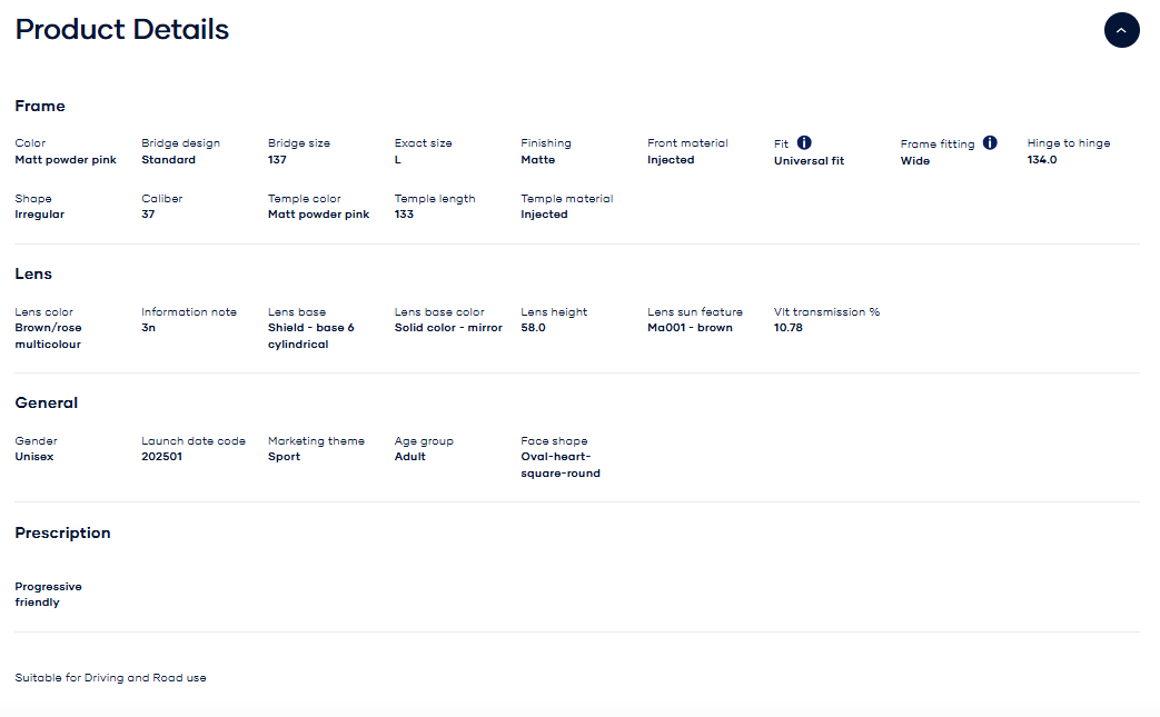 • Nano Optics 技術:高端鏡片技術,提供極少的失真、卓越的清晰度及持久的防霧效果,是追求極致視覺品質的最佳選擇。