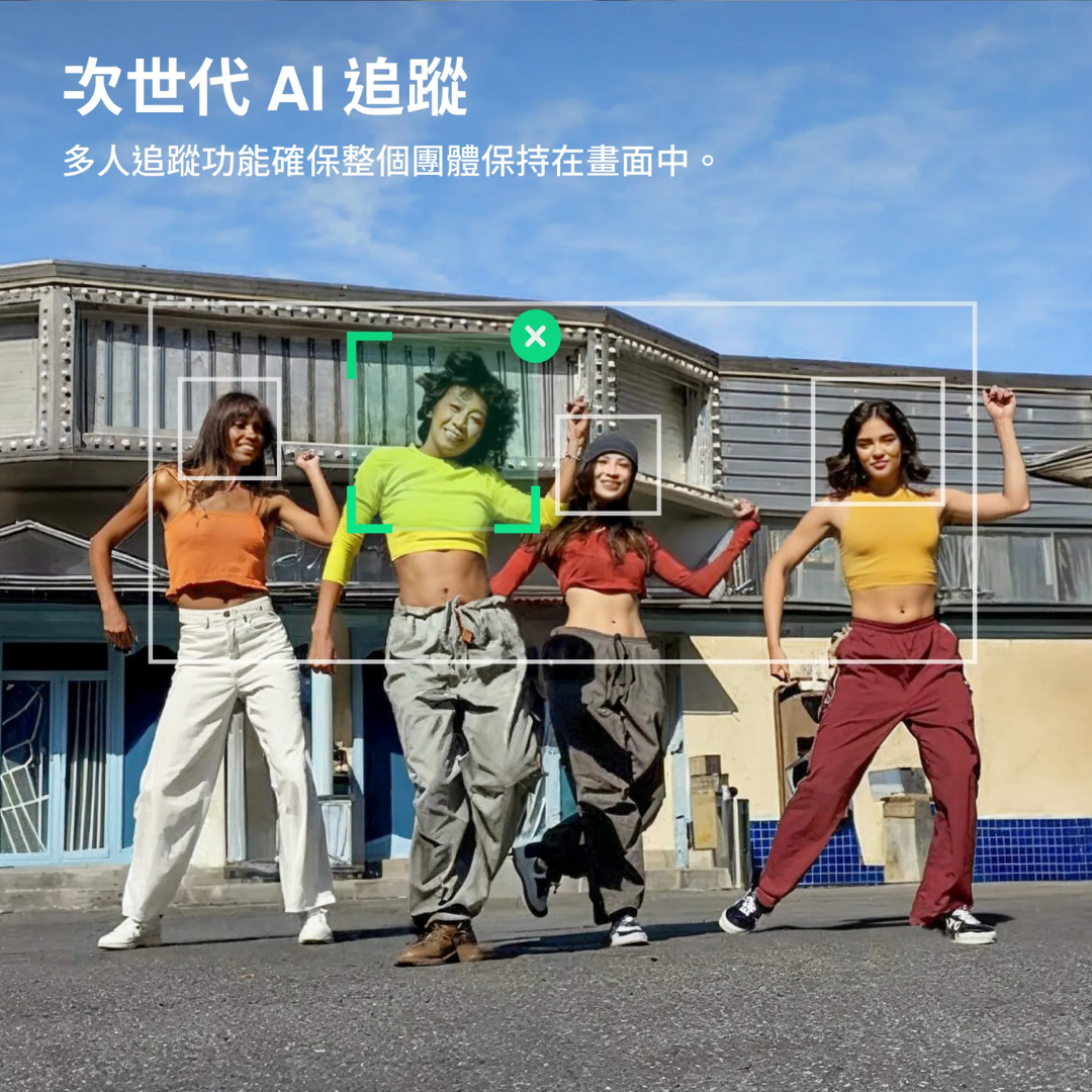 - 智能跟隨模式:深度追蹤 4.0 具備長距離及多人追蹤功能,具備自動跟隨功能,能夠輕鬆追蹤主題,適合動態拍攝。