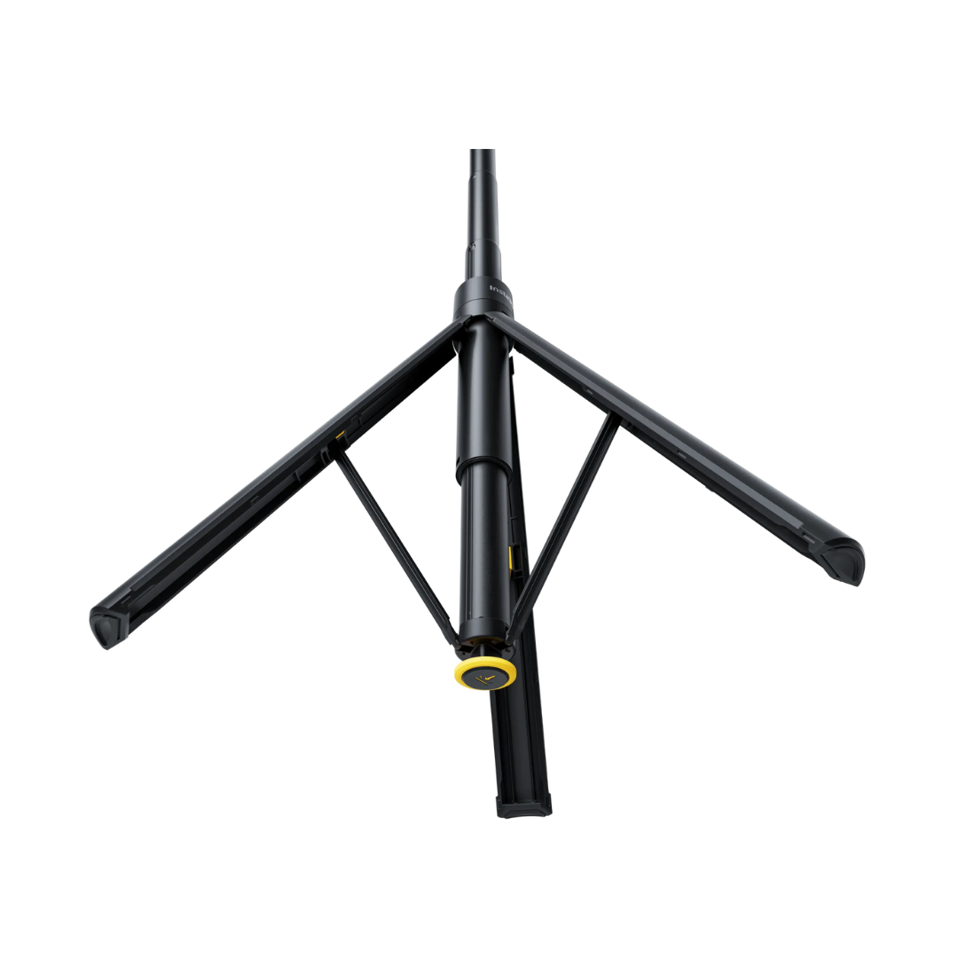- 當三腳架落地時,其支架會自動展開,方便快速使用。只需放下並拍攝即可。
