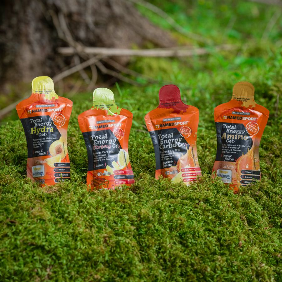 NamedSport Total Energy Hydra-Gel 是一款專為運動員設計的能量凝膠, 具有延時釋放的麥芽糊精、Palatinose™(低升糖指數)和 Vitargo®,富含礦物鹽,可為運動員提供持續、漸進的能量。含有維生素 C,可對抗耐力運動期間的疲倦和疲倦。