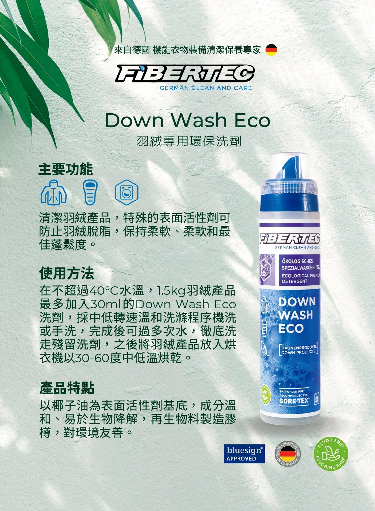 總括來說,Fibertec Down Wash Eco是一個優秀的選擇,適合那些想要清洗羽絨睡袋和服裝而不損壞纖細羽絨纖維的人。它的特殊表面活性劑可防止羽絨脫脂,使其保持柔軟、順滑和最佳的蓬鬆度。即使經過多次洗滌,羽絨的蓬鬆度和保溫性能也能保持最佳,確保您的睡袋或服裝可以長期使用。