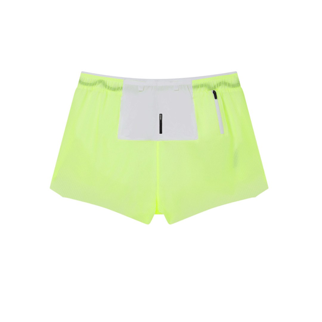 短褲採用法國製的超輕量網眼面料,並添加了彈性纖維以增強伸展性,將賽跑輪廓與技術性改良相結合。下擺經過激光切割,以提供最大的舒適感,而獨特的蘆薈注入的形狀粘合內襯則有效消除摩擦。後方設有一個外部口袋,可容納四個能量膠,前方還有腰帶環以容納兩個能量膠。其他中途所需的物品可以安全地存放在拉鍊後口袋中。