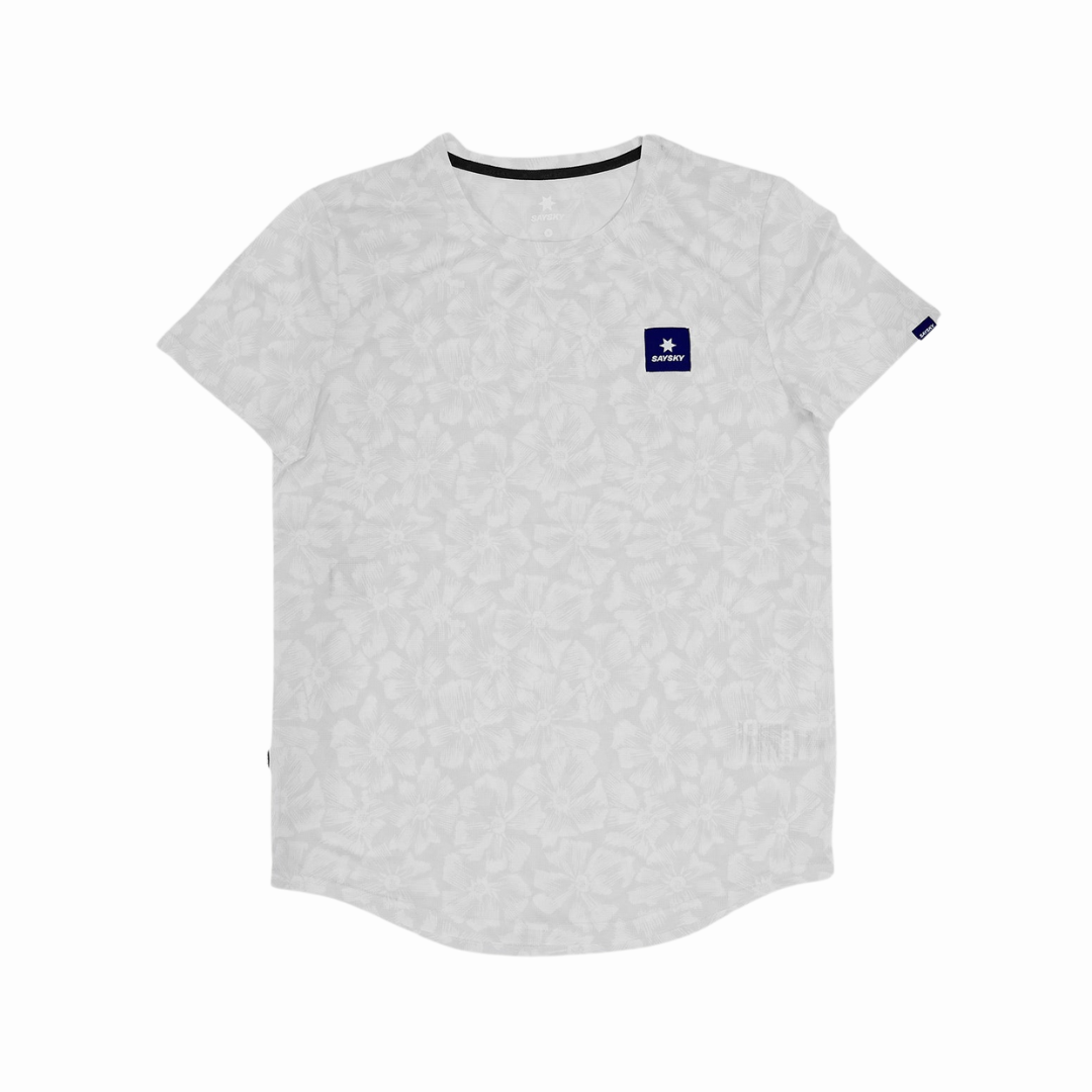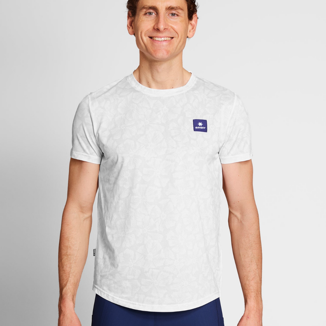 SAYSKY Flower Combat T-Shirt 是一款跑步 T 恤,重新詮釋了我們標誌性的花卉圖案,正好在花季盛開。這款 T 恤具備優異的排濕和快乾性能,確保在整個跑步過程中保持高效表現。其技術性設計減少面料對皮膚的黏附感,非常適合在炎熱天氣中跑步、疊穿或作為比賽日的服裝。