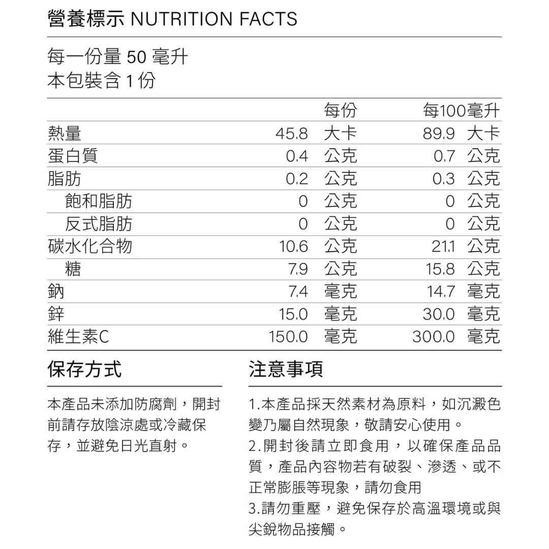Directions for use: Drink immediately after opening, 50ml per packet.