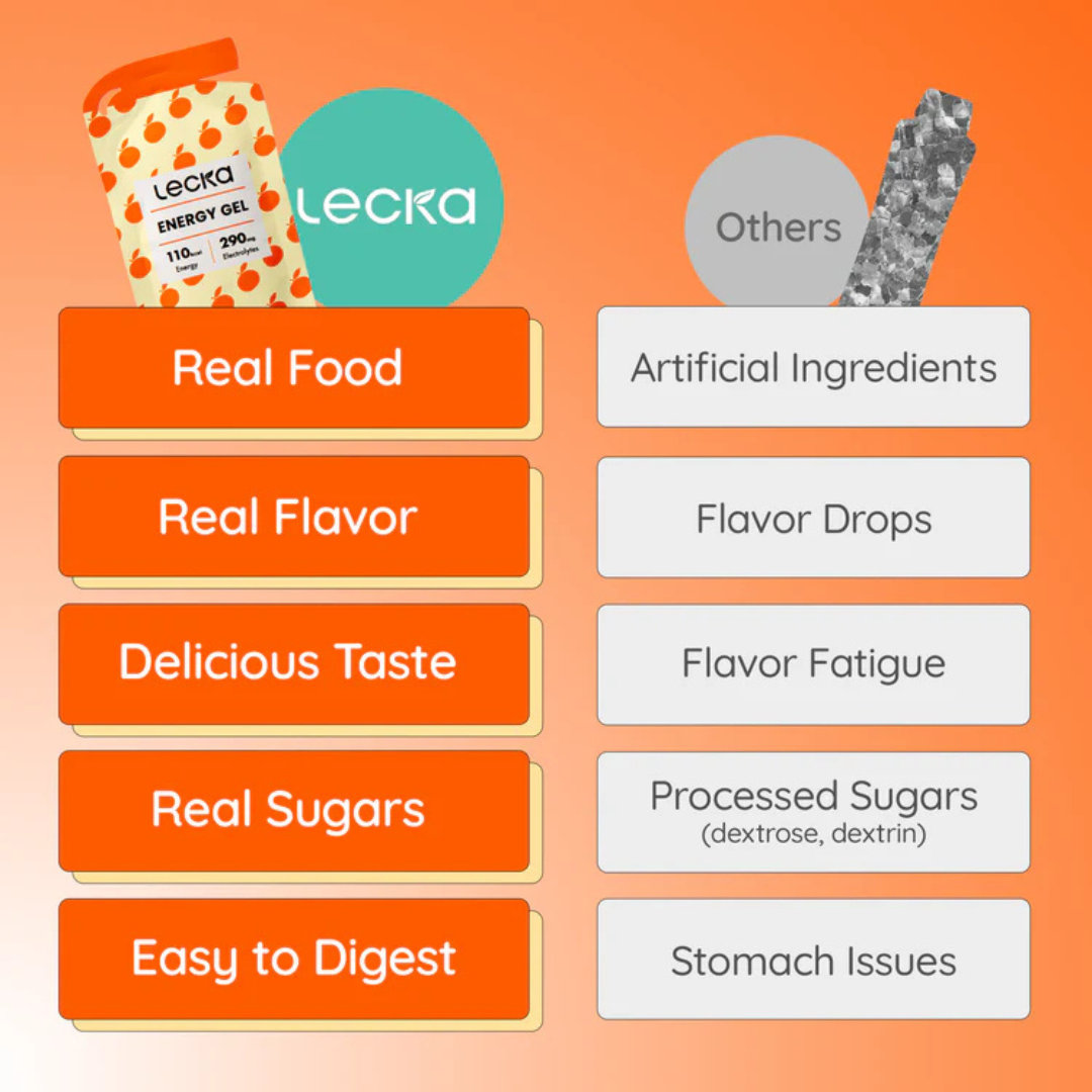 Lecka energy gels are the ideal tropical energy supplement for your high-intensity workouts, providing you with a pure carbohydrate boost and avoiding gastrointestinal discomfort.