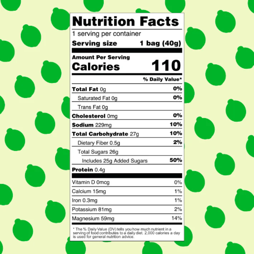 - Lime Ginger: Honey, lime juice (14%), filtered water, basil seed powder, ginger powder (1.7%), salt, potassium sorbate, magnesium oxide, citric acid.