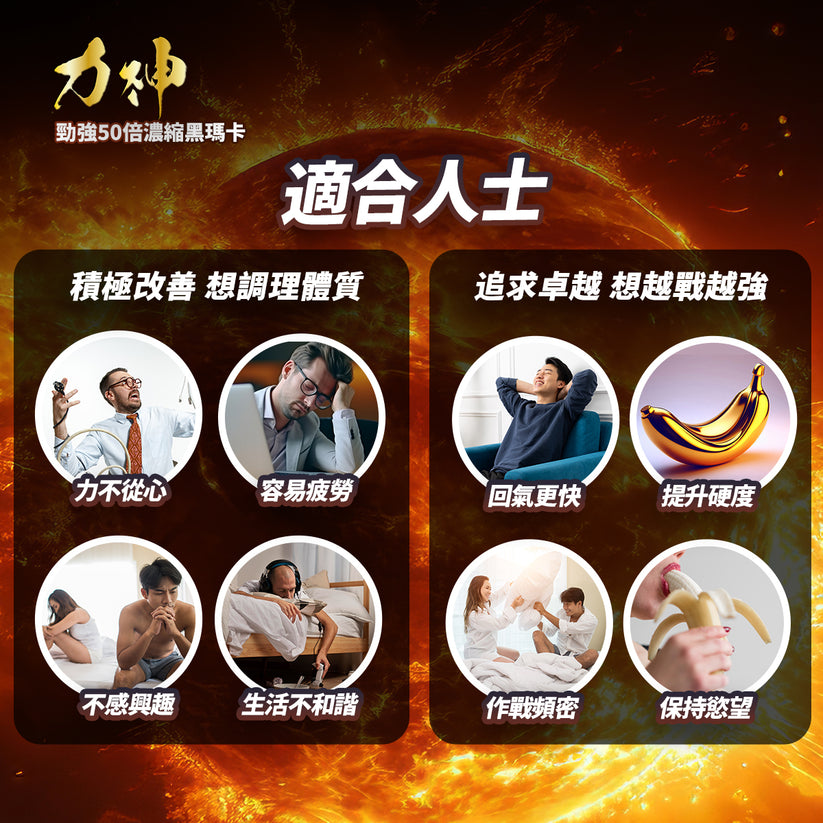 Maca helps enhance male function, improve stamina, and more effectively combat fatigue and relieve stress.
