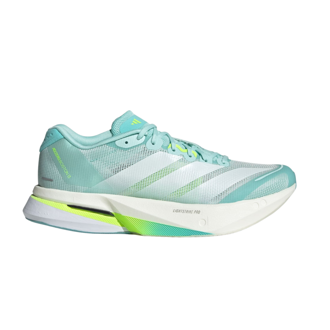Run your fastest in the lightweight, responsive adidas adizero Boston 13 running shoe. Designed for intense training before race day, the breathable mesh upper and secure midfoot lockdown let you comfortably push your pace. Lightstrike and Lightstrike Pro midsoles with ENERGYRODS provide durable, fast rebound. The Lighttraxion outsole adds versatile traction, while Continental™ rubber in the toe box adds slip resistance.