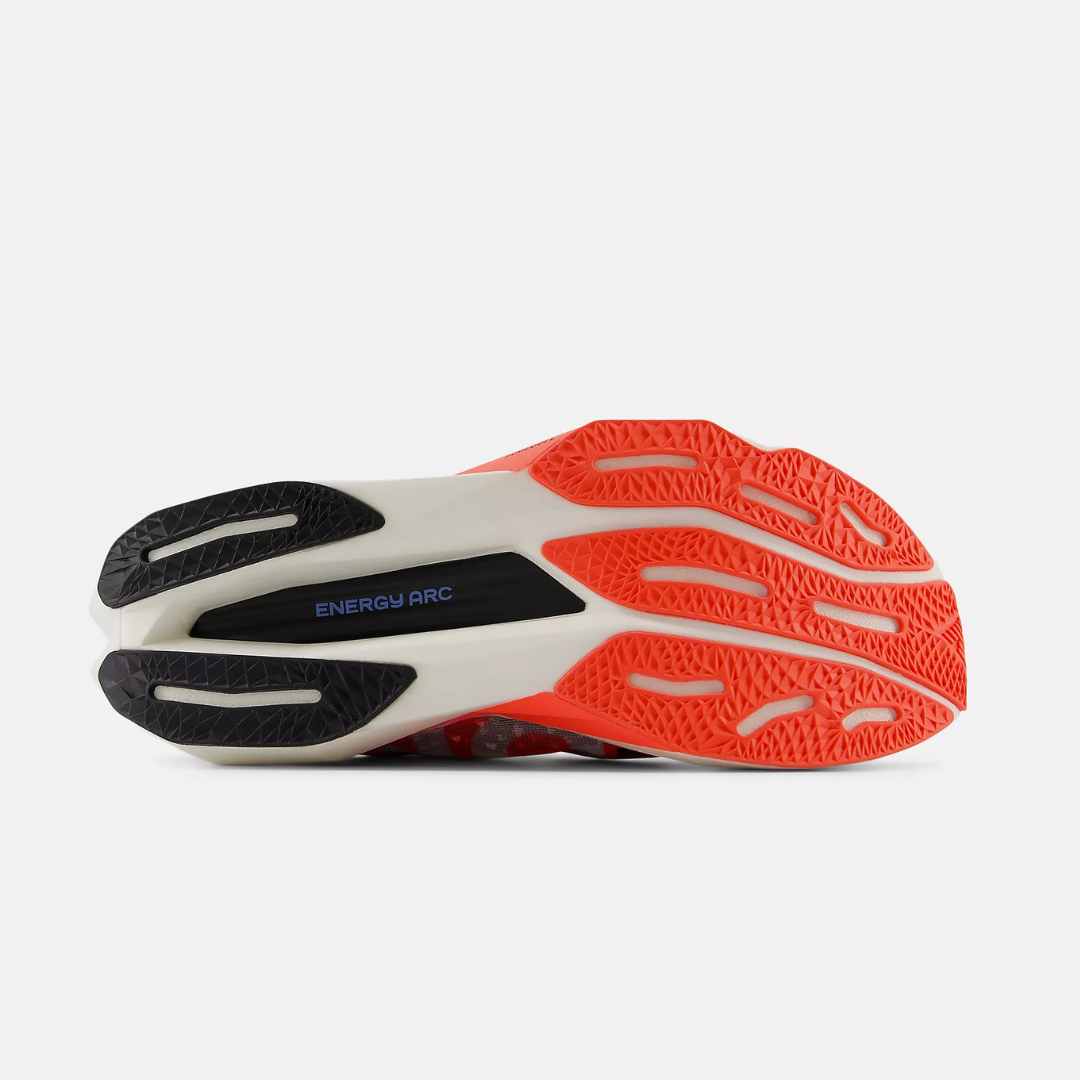 • Energy Arc: Combining sport-specific carbon fiber plate geometry with strategic midsole voids, designed to increase stored energy for higher total energy return.