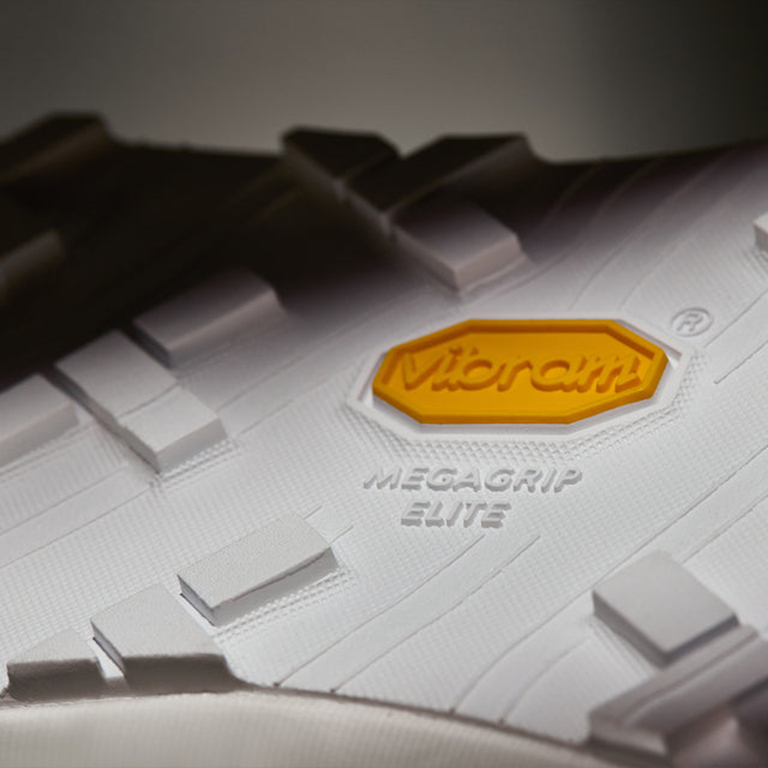 -  Outsole: The new norda outsole is made from a single piece of material and features Vibram® Megagrip Elite rubber, a first in the industry. The formula is designed for race day, offering maximum grip and lightweight properties. The enhanced traction of Megagrip Elite allows for variable stud heights, making it easy to transition between technical trails and dirt roads.