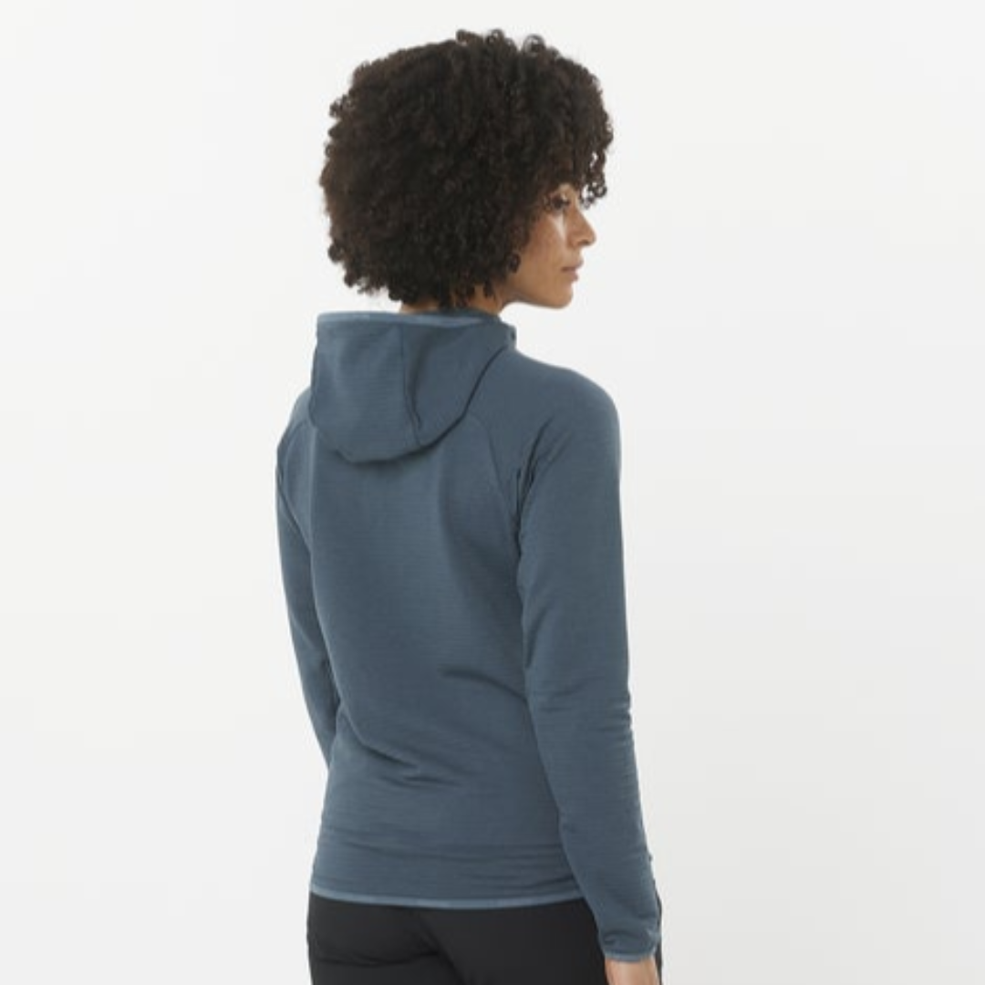 The Women's Salomon ESSENTIAL LIGHTWARM Full-Zip Hoodie is the ideal midlayer for a variety of winter activities, whether hiking or skiing.