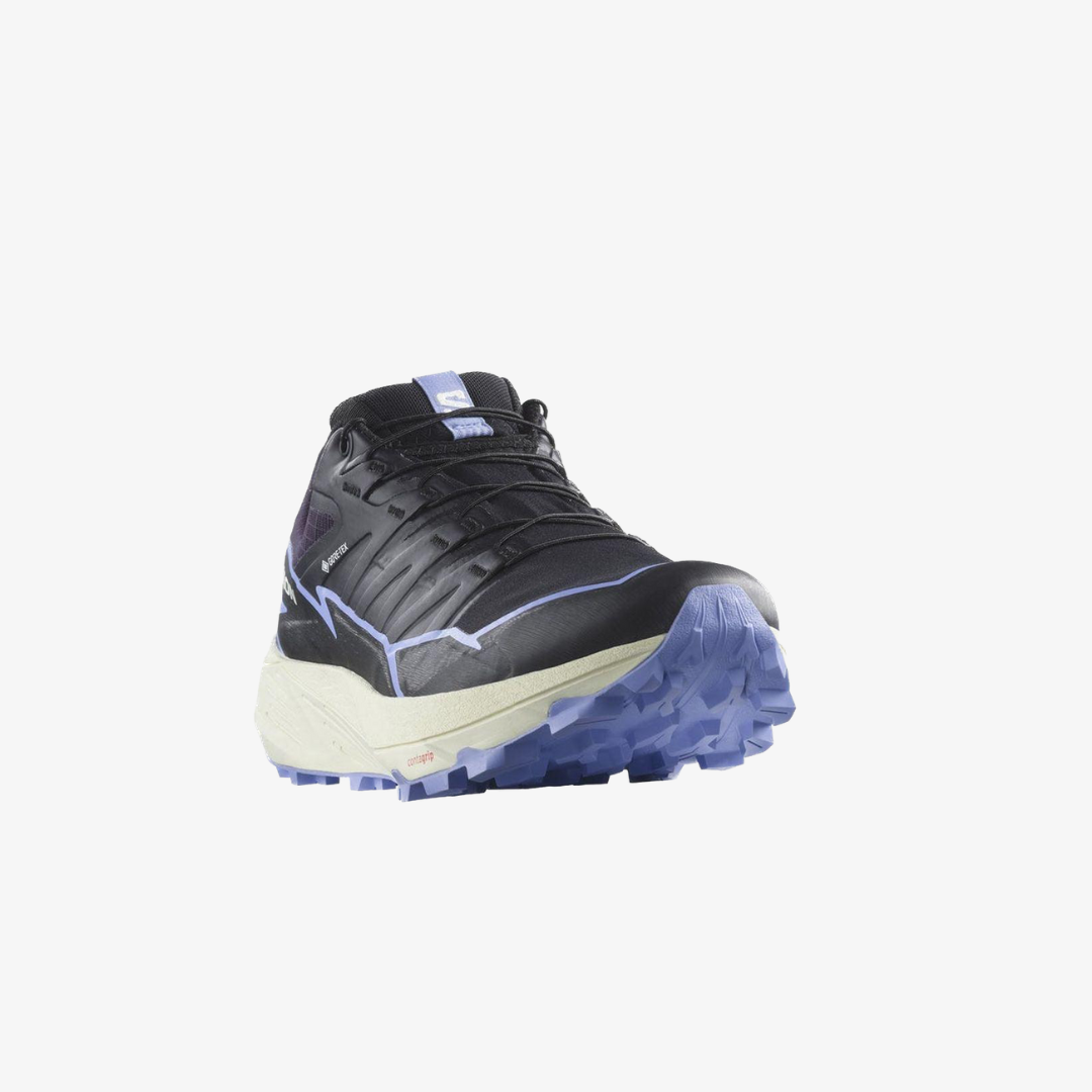 The Salomon Women's Thundercross Gtx Running Shoe is a waterproof trail running shoe that provides a dynamic, cushioned running experience with superior traction and stability. Featuring an aggressive 5mm ballast, this shoe is built to handle any terrain, no matter how tricky, technical or extremely rugged.