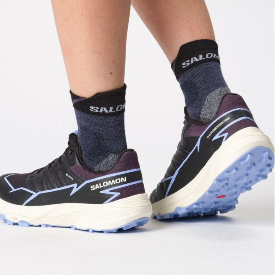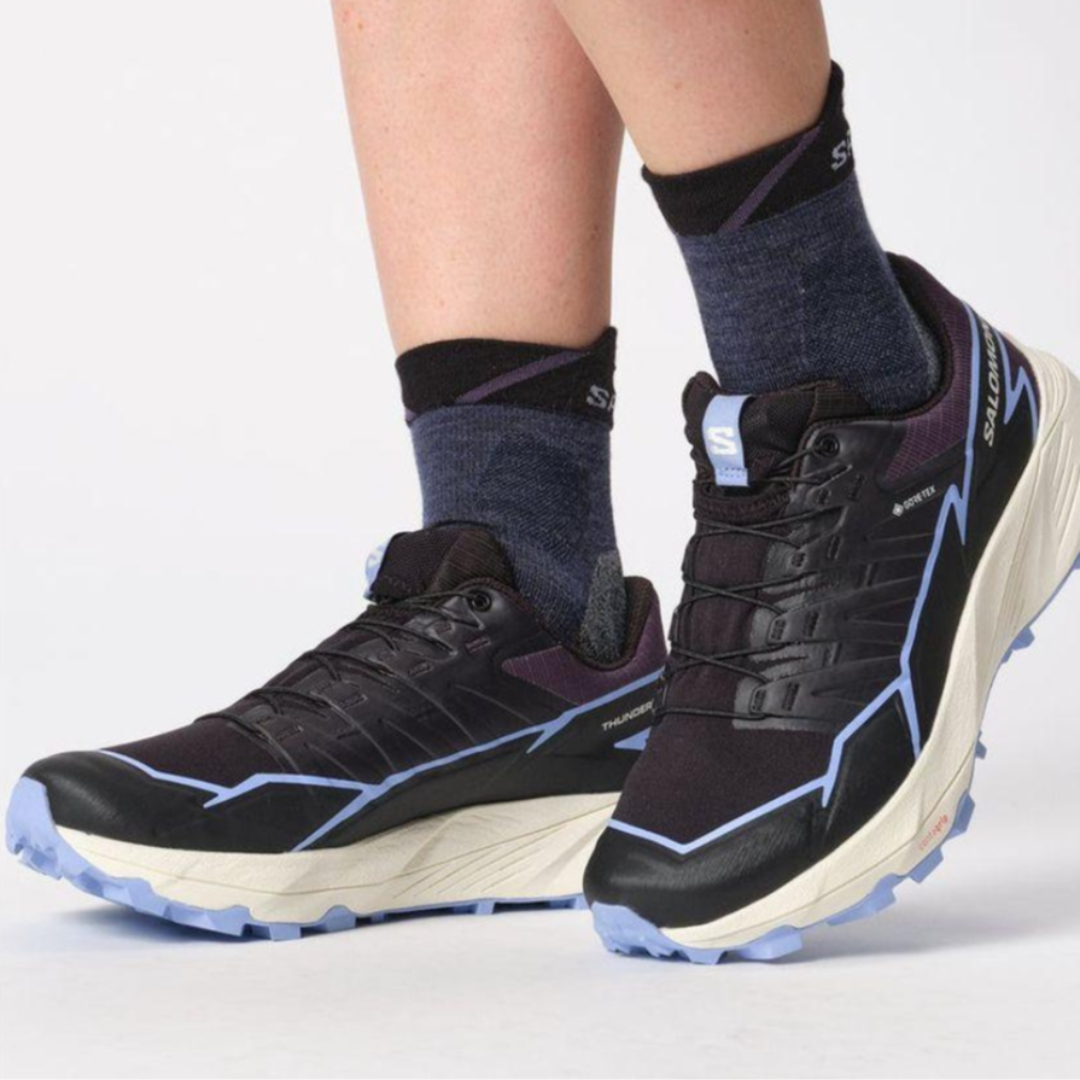Whether you're facing rugged mountains, mud or technical cross-country trails, the Salomon Women's Thundercross Gtx running shoe delivers superior traction and stability. The midsole design of this running shoe provides excellent cushioning to smooth your landing and give you a comfortable running experience.
