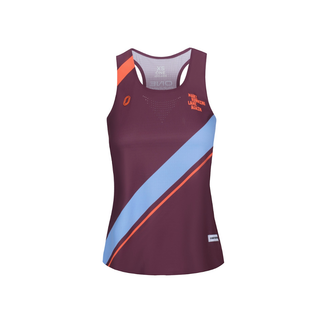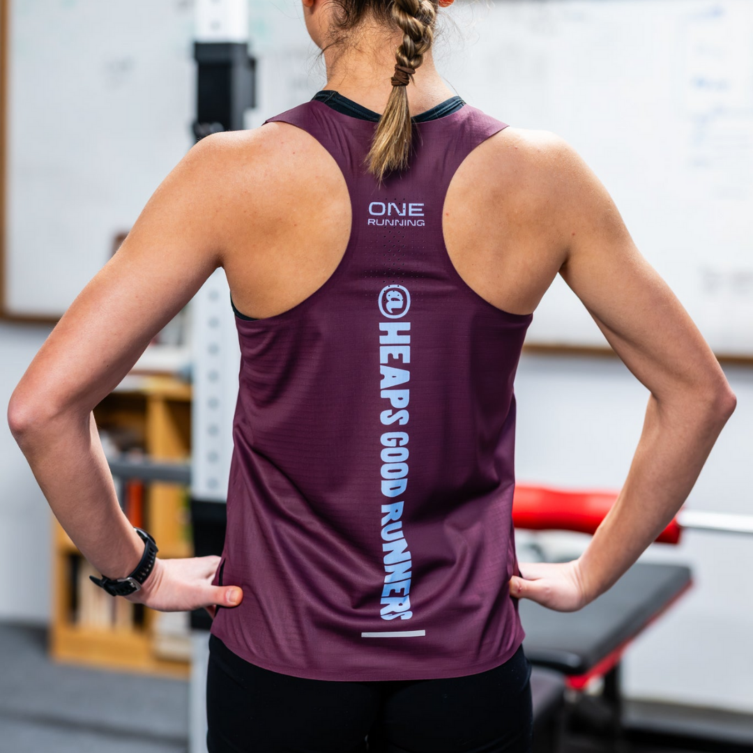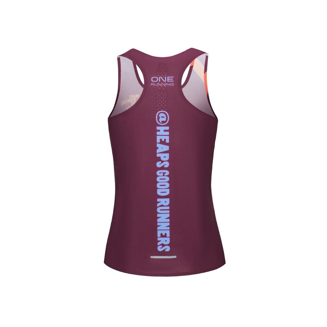 One Running Women's Victory Speed Tech Singlet (Heaps Good Runners) - Zinfandel / XS Pre-order product (please refer to the product description for the pre-order time)