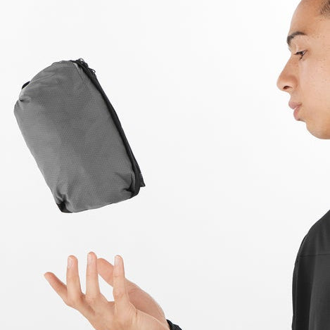 The Salomon Men's BONATTI TRAIL Waterproof Jacket features sophisticated construction and seamless shoulders to handle the most challenging trails. Premium Japanese PERTEX® fabric provides lightweight waterproof protection, while the optimized fit makes it easy to wear over the Salomon 12L Hydration Pack.