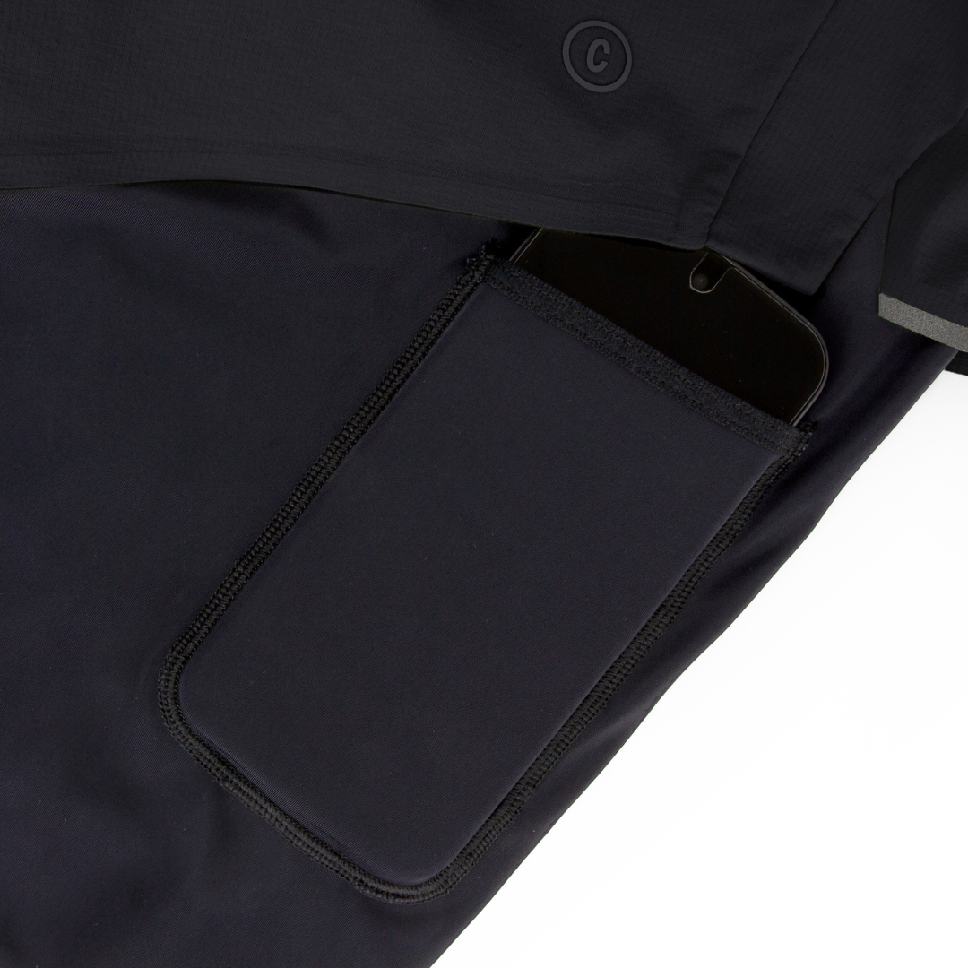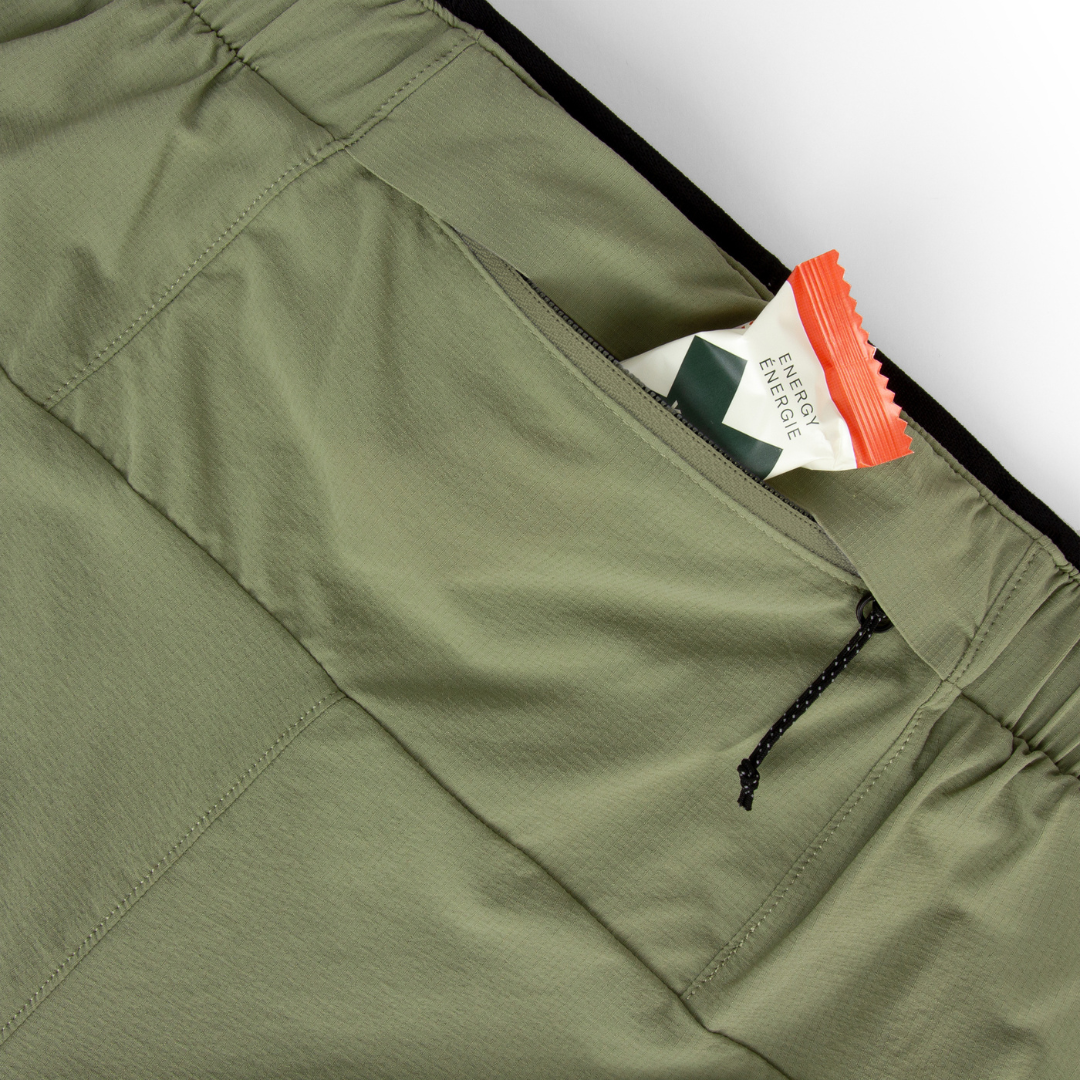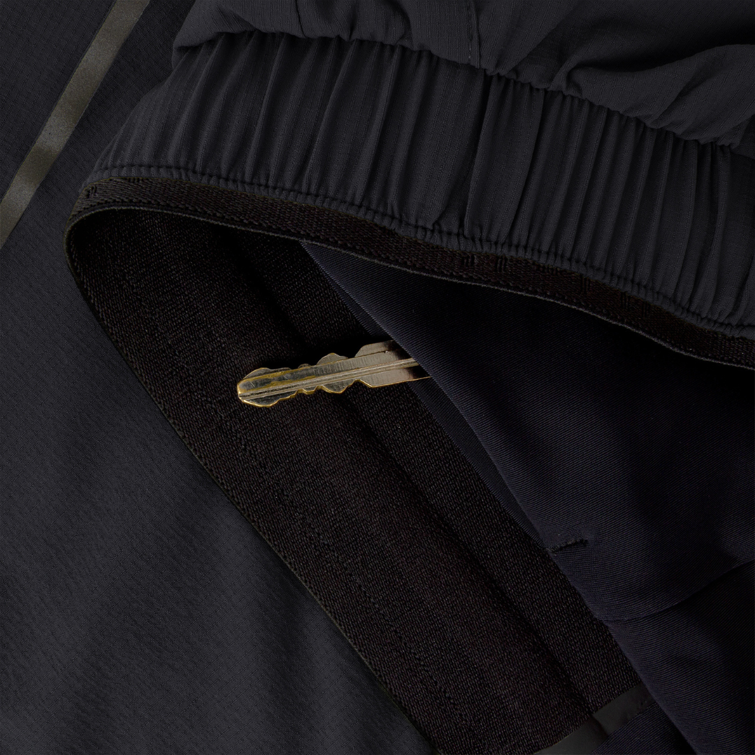 后方拉链口袋可安全收纳能量补给、卡片与钞票,另设有隐藏式内袋,让钥匙稳固不晃动。内层采用反向车缝、无摩擦设计的COOLmatic | PLUS™ 长版内衬,具备降温处理、加速排汗与异味控制机能。内衬中整合弹性货物口袋,可放置能量补给或手机,为日常长距离训练提供更充足的收纳与支援。