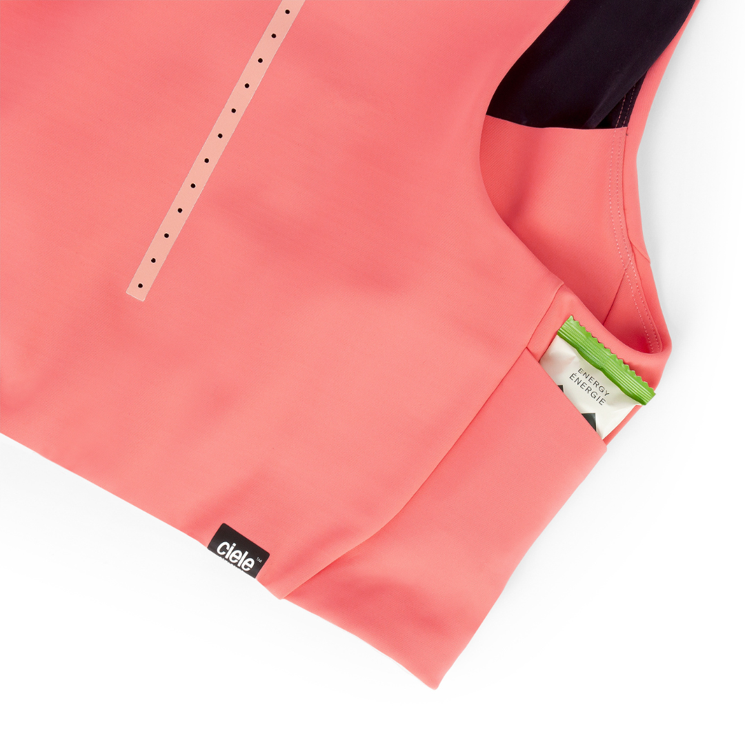 可拆式胸垫与侧边收纳口袋,可放置钥匙、卡片与能量补给,让这款运动内衣真正实现从「比赛日到日常训练」的全方位需求。