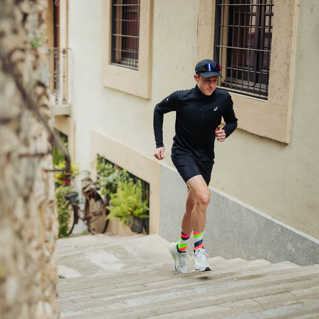 这款高舒适度跑步袜采用轻量级的Microlon® 微纤维制成,设计于德国,制造于意大利。袜子的脚垫、脚跟和脚趾区域加强设计,确保最大舒适度和耐用性。如果您介于两个尺寸之间,建议选择较小的尺寸,以确保完美的合身和舒适感。