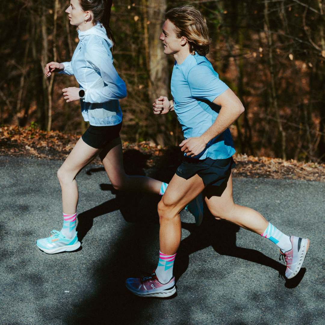 Incylence Ultralight Elements High-Cut Running Socks - Unisex / White Blue Pink / 35-38 预订产品(预订时间请参阅产品描述)