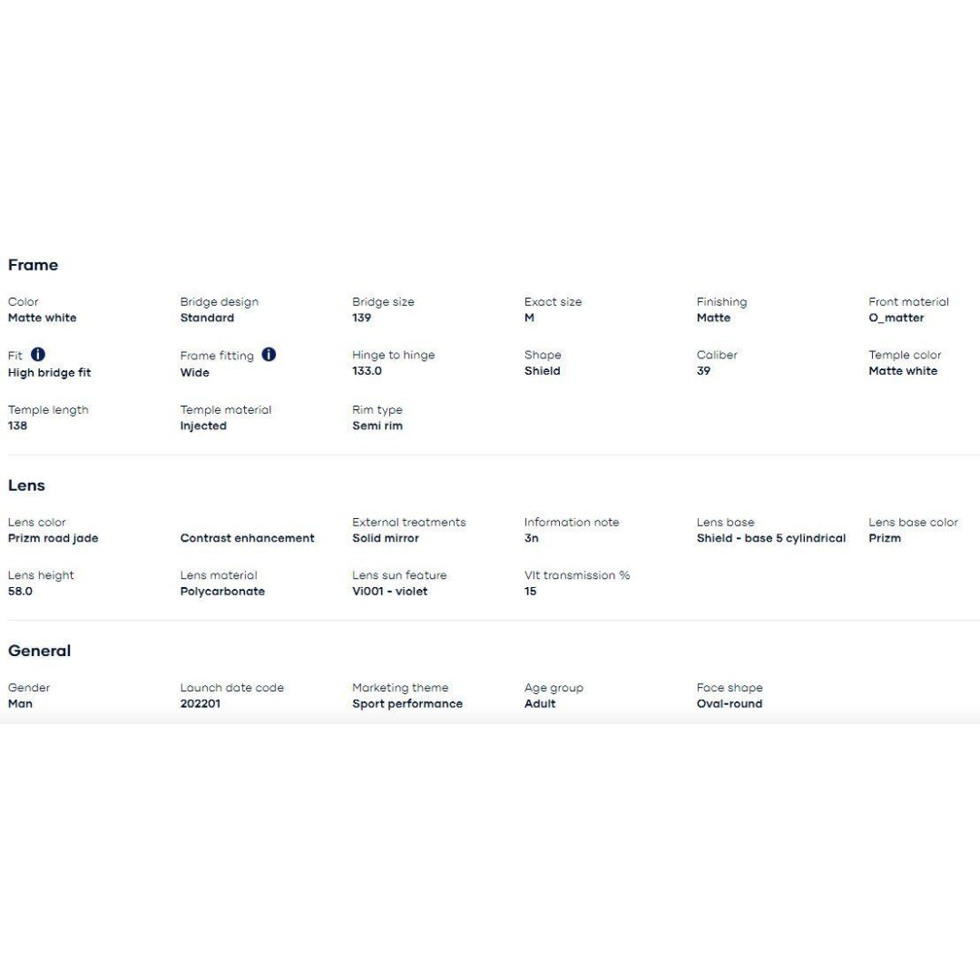 Oakley Sutro Lite Sweep Matte White/Prizm Road Jade 0OO9465-946504 - Matte White / Prizm Road Jade / Contrast Enhancement, External Treatments 预订产品(预订时间请参阅产品描述)