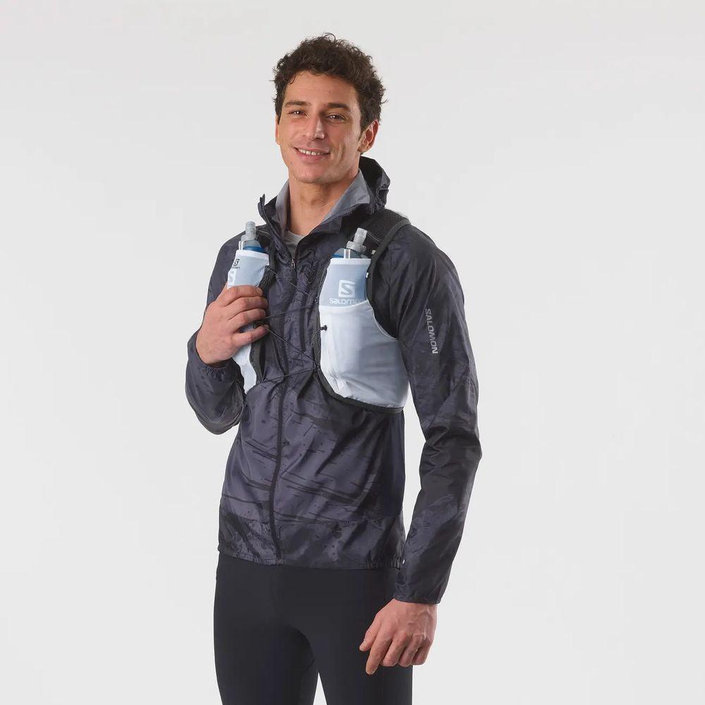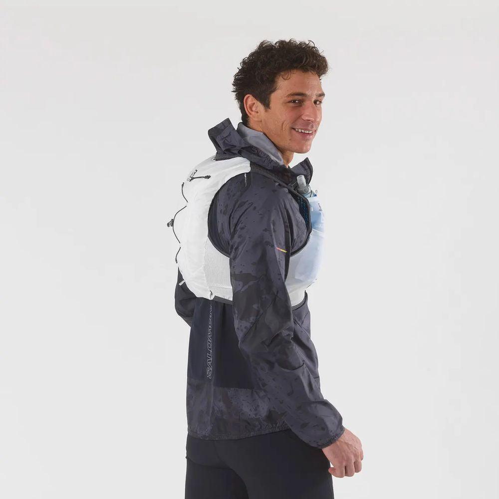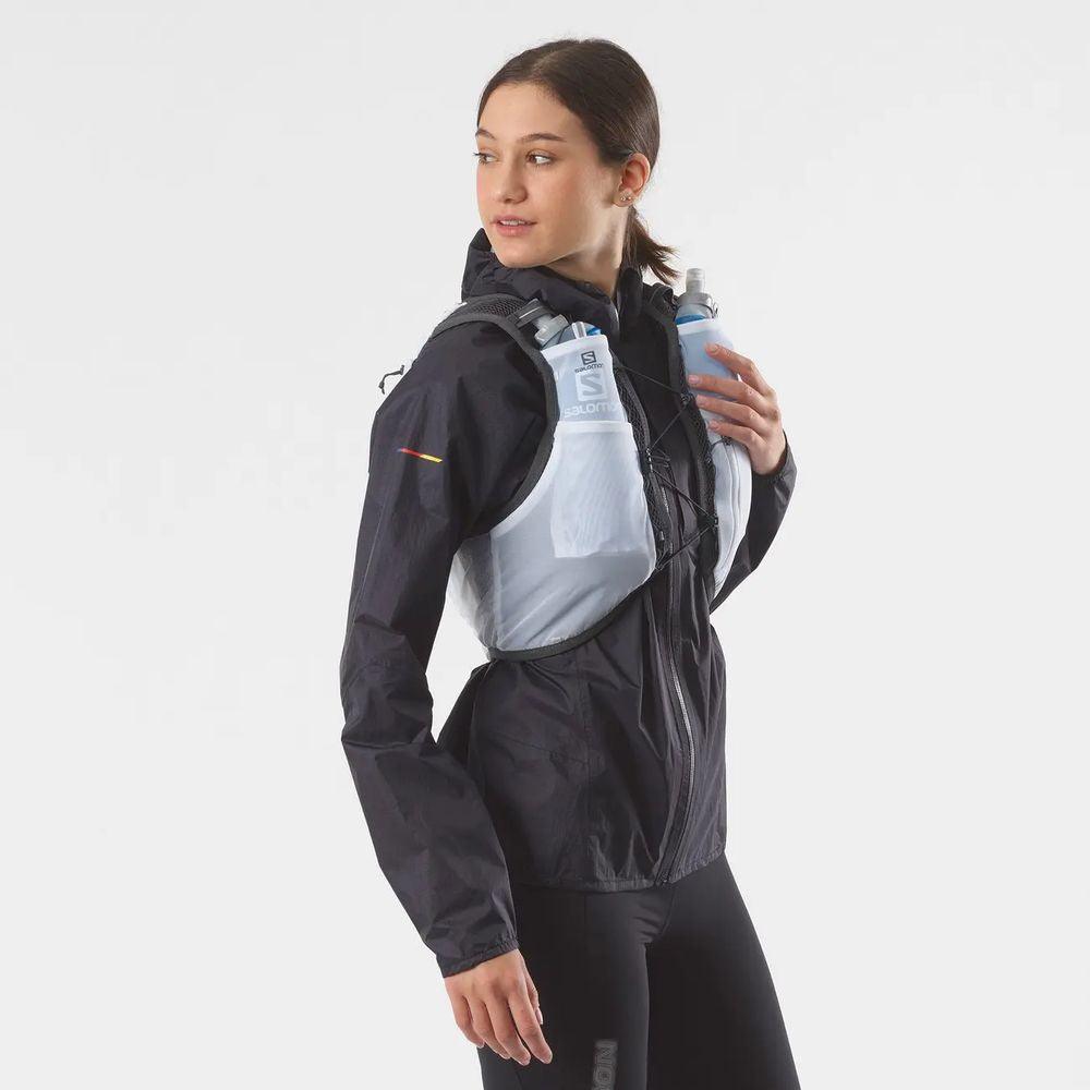 Salomon Active Skin 4 Running Vest w/ flasks采用精密贴身设计,采用柔软的Sensifit™贴身设计,内部网眼设计提高了舒适度,调节系统可以使您的背心更贴合身形。它还配备了两个战略性口袋,可以让您随时快速取用水袋,并配有两个软水袋(容量为500毫升),也兼容1.5升的水袋,让您在行进中持续补充水分。
