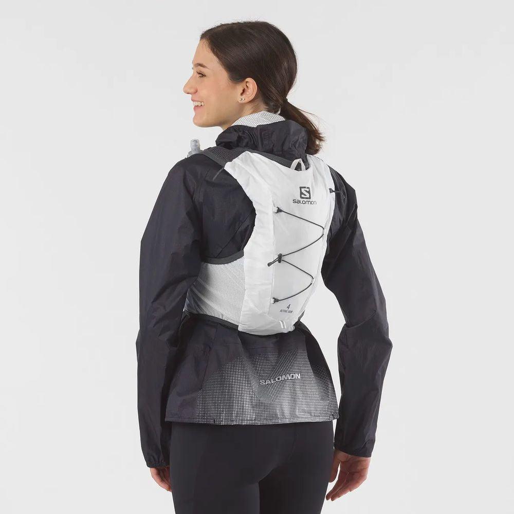 Salomon Active Skin 4 Running Vest w/ flasks是一款专为越野跑和户外运动设计的水袋背心。它轻巧易携,采用柔软、透气的面料和贴身设计,可以提高舒适度和稳定性。它还配有多个口袋和隔层,可以方便存放您所需的物品,让您在行进中随时取用。