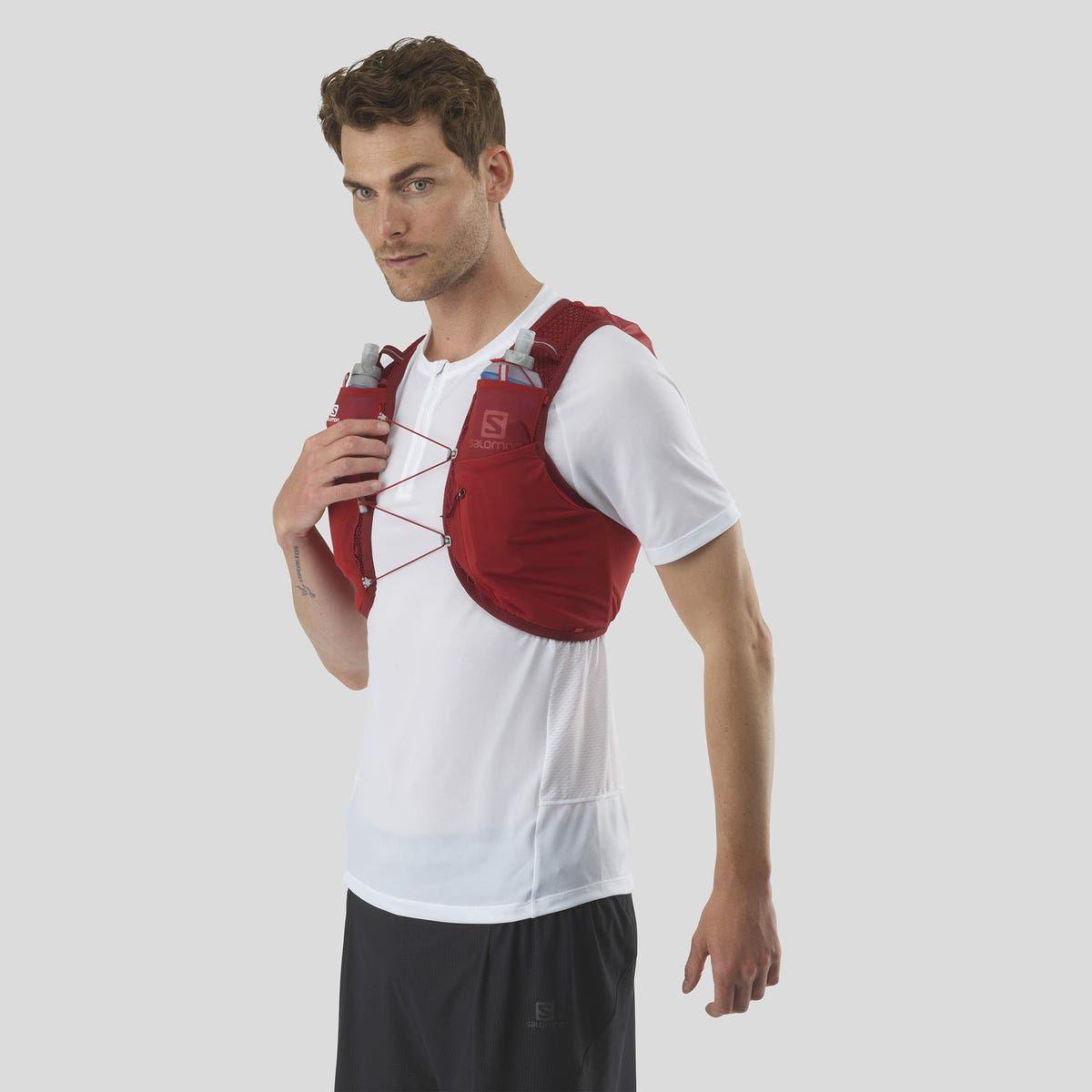 Salomon Unisex Active Skin 8 Running Vest w/ Flasks - Fiery Red/Ebony / XS 预订产品(预订时间请参阅产品描述)