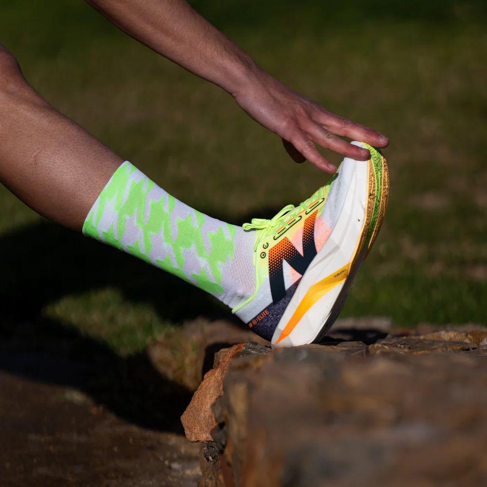 Sporcks Flow Running Socks 采用高品质的材料和精心设计,以提供最佳的运动体验。它在踝部和跖骨区域提供额外的支撑,有助于减少运动时的疲劳和不适。中度压缩程度促进血液循环,减少肌肉疲劳和炎症的风险,让您在长时间的跑步中感到更加轻盈和舒适。