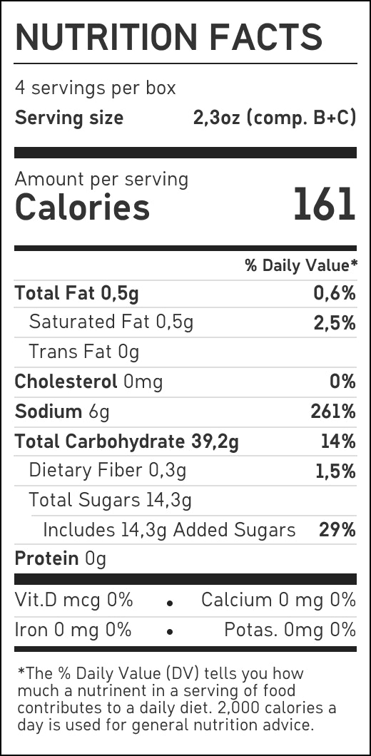 - 改良淀粉(Modified starch): 用于改善产品的稳定性和口感。