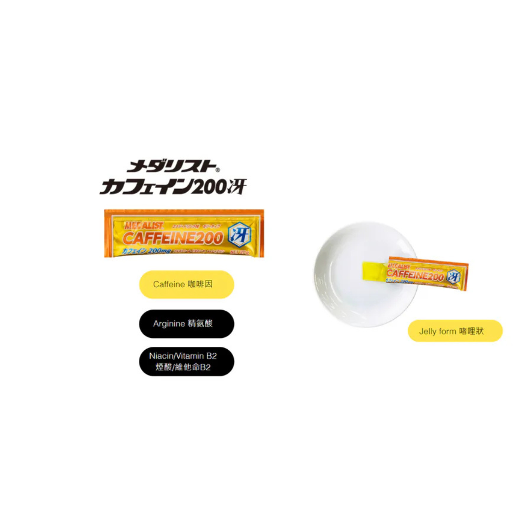 根据运动员普遍的回馈,希望摄取咖啡因但「不喜欢碳酸」、「担心卡路里」和「想一次性摄取咖啡因」。 Medalist Caffeine200 含200毫克咖啡因,属高含量咖啡因食品, 就能满足到这些要求。 Medalist Caffeine200 是啫喱状及能量饮品味道,非常容易食用。进食时口感不干及感觉清爽。