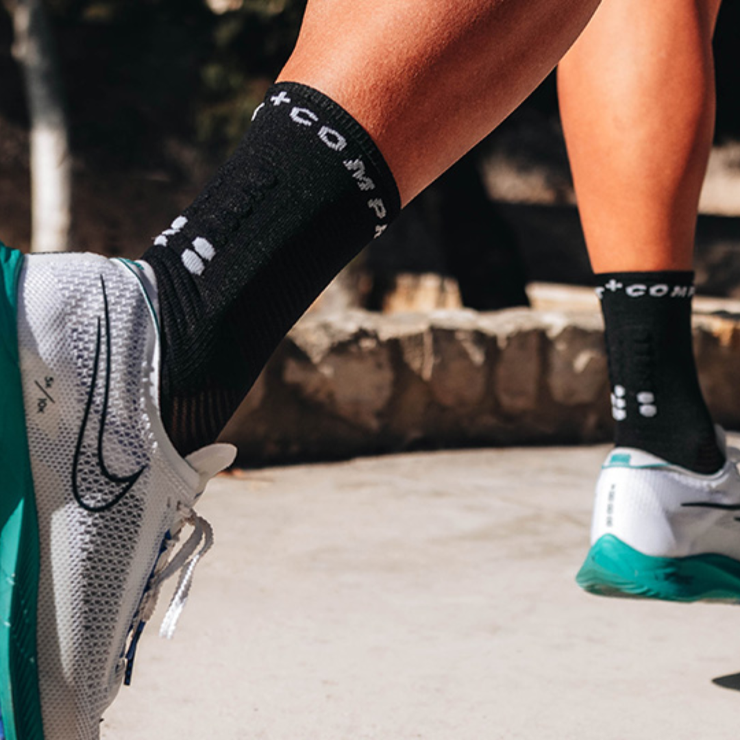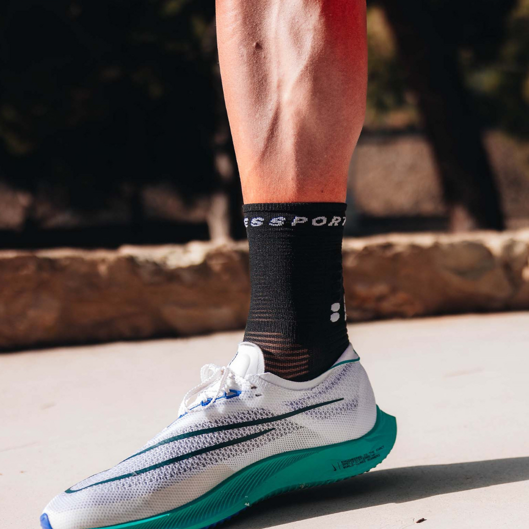 - 技术编织:袜子的上部和筒部采用条纹技术编织,提供最佳通风和排汗效果,特别在速度和温度上升时表现出色。
