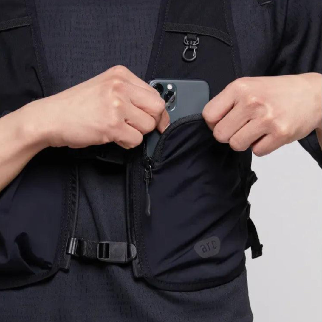ARC 10公里跑步背心是您的理想选择。当您与朋友一同运动时,我们通常会搭乘公共交通工具前往一个喜爱的公园或跑道,跑个大约10公里。在运动后,携带着多余的袜子、信用卡、AirPods和手机,随时可以前往任何地方,非常方便。