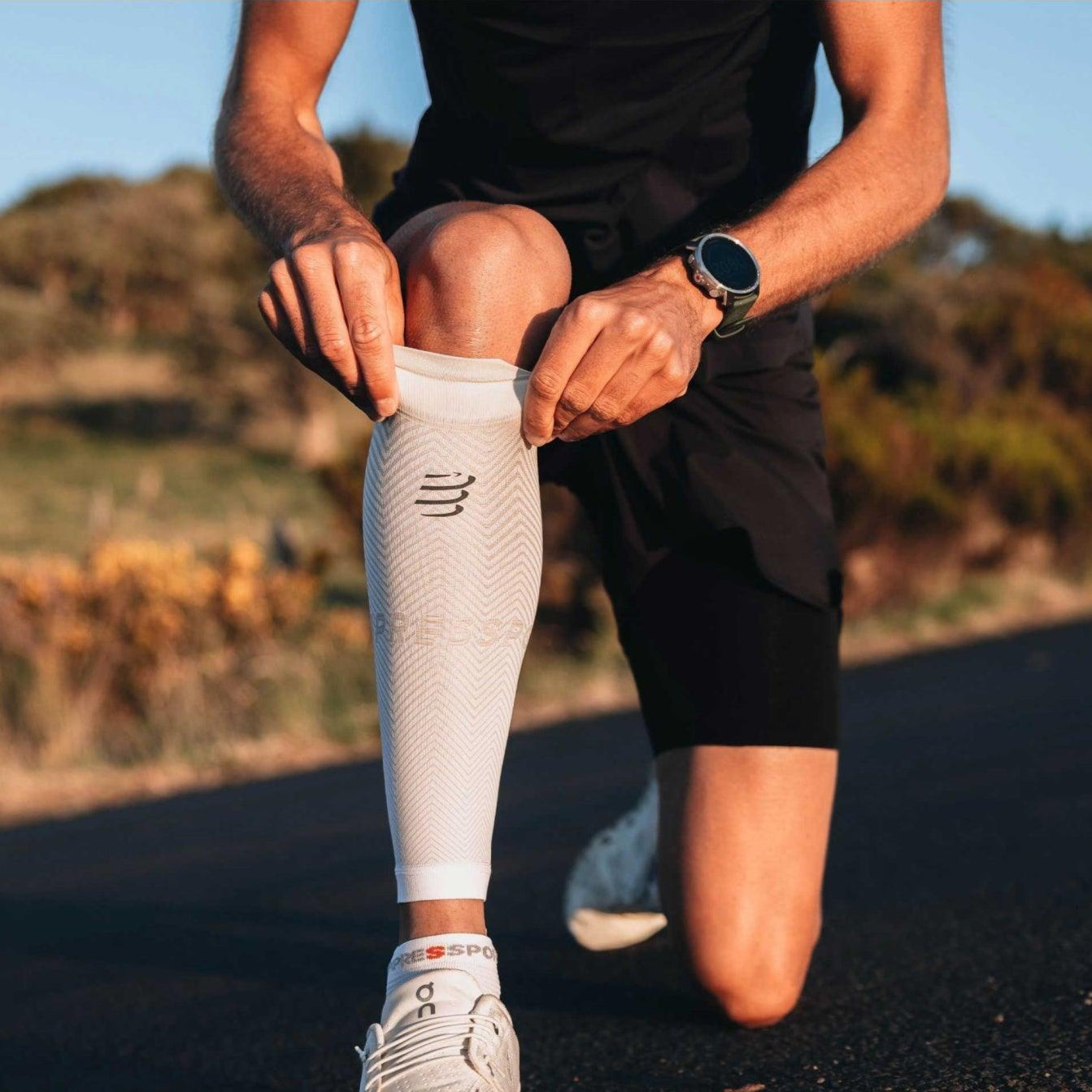 Compressport Unisex's R2 Oxygen Calf Sleeves - White/ Nebel Grey / T1 预订产品(预订时间请参阅产品描述)