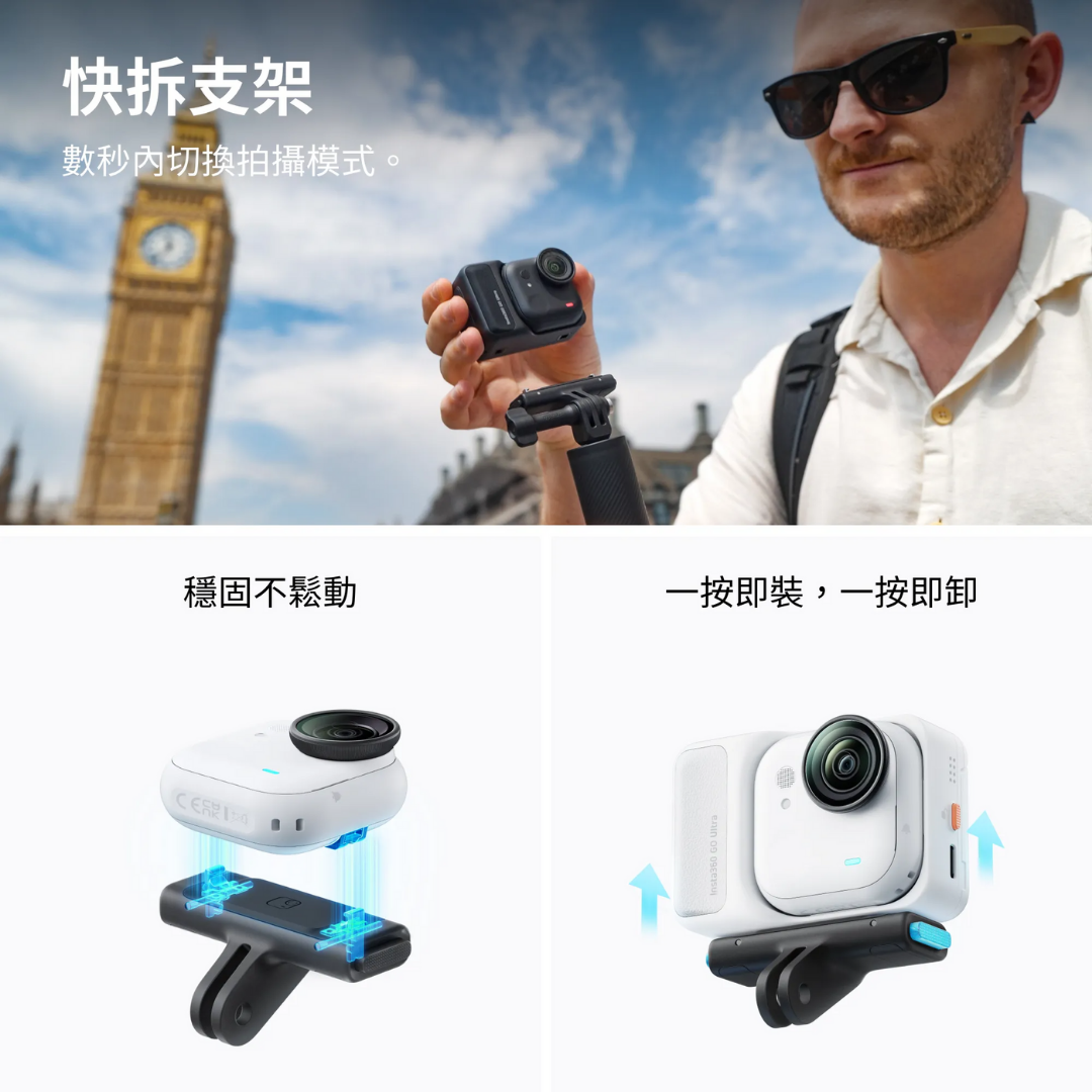 Insta360 GO Ultra Creator Bundle 以小巧设计、先进功能与多样配件启发您的创意,是捕捉人生中美好时刻的完美工具,轻松呈现惊艳的4K 品质内容!